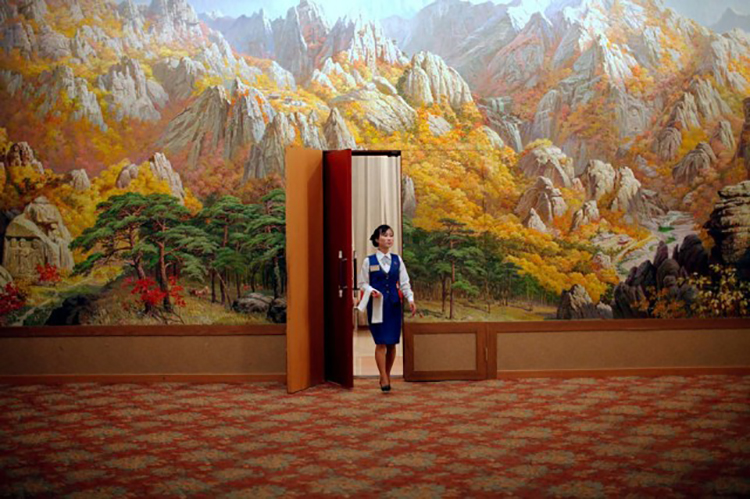 看完了朝鮮空姐,你想知道朝鮮其他職業(yè)女性是什么樣子的嗎?也許是因為影像資料較少,也許是因為傳言太奇幻。朝鮮,在很多人眼里擁有一絲神秘的色彩。路透社這一系列肖像作品以拍攝朝鮮職業(yè)女性為切入點。攝影師克服重重阻難,盡力為我們記錄朝鮮女性真實的工作狀態(tài)。兩位女士在調(diào)整朝鮮最高領(lǐng)導(dǎo)人和客人的座椅。
