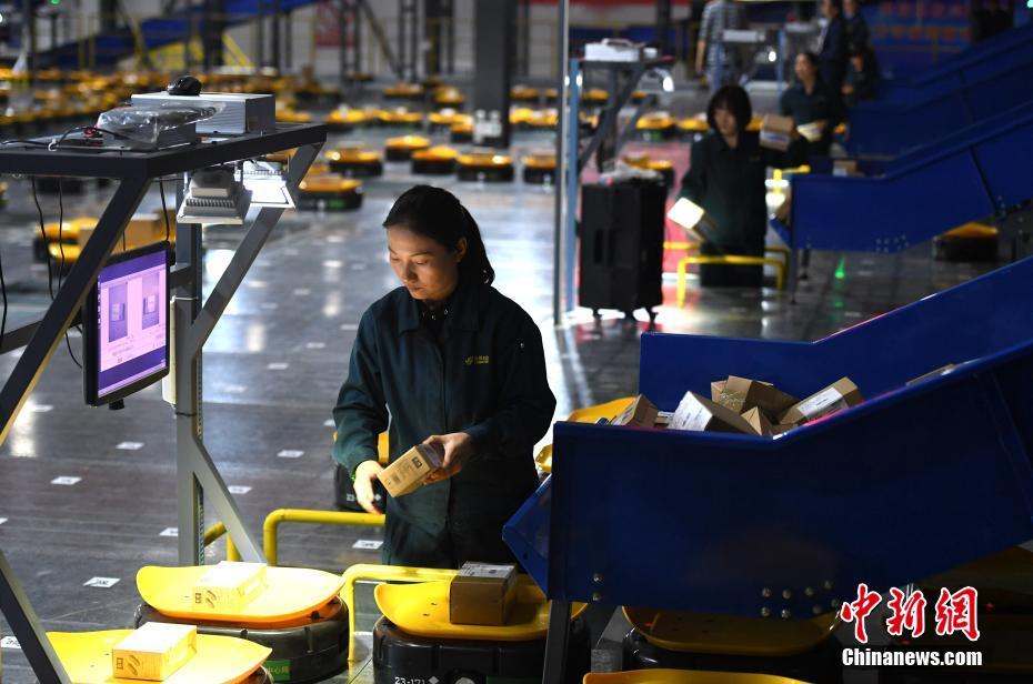 智能機器分揀機器人“小黃人”將包裹投遞到各個地區(qū)。文/韓蘇原 夏瑩 圖/韓蘇原