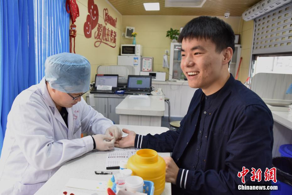 11月26日,浙江省寧波市江北區(qū)莊橋街道李夢小區(qū)北側原李家村地塊外圍空地發(fā)生爆炸。截至目前,該事件造成2人死亡,4人重傷,15人輕傷,2人失聯(lián),部分群眾留院觀察。事件發(fā)生后,當?shù)厥忻褊x躍為爆炸傷員獻血,據(jù)寧波市中心血站統(tǒng)計,截至27日14時,共有306位愛心人士成功獻血,獻血總量達99800毫升。圖為一位市民正在驗血。 何蔣勇 攝