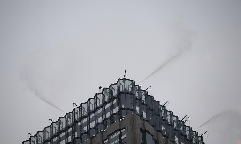 記者注意到,水霧來(lái)源于草叢中的多個(gè)隱形噴頭。這項(xiàng)讓天府廣場(chǎng)有些“仙味兒”的變化,正是成都推進(jìn)大氣污染防治科技治霾的新動(dòng)作——打開這個(gè)名為“超細(xì)清水霧系統(tǒng)”的除霾裝置,可以降解距離地面10米以內(nèi)的漂浮揚(yáng)塵顆粒物,起到除霾、降塵、降溫、增加空氣濕度、增加負(fù)氧離子的作用。