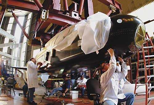 正在制造中的X-37B。X-37太空飛機(jī),也簡(jiǎn)稱為“X-37”,是美國(guó)國(guó)防部與宇航局共同制定的“FALCON”計(jì)劃、為實(shí)現(xiàn)“快速全球打擊”的構(gòu)想而研制的一種空天飛機(jī)。這種空天飛機(jī)在兩小時(shí)內(nèi)可攻擊地球上任意一個(gè)目標(biāo)?!癤-37”太空飛機(jī)是“FALCON”項(xiàng)目中的第一個(gè)預(yù)研型號(hào),是與微型航天飛機(jī)相似的飛行器。它將驗(yàn)證NASA軌道太空飛機(jī)項(xiàng)目中25項(xiàng)創(chuàng)新的航天技術(shù)。