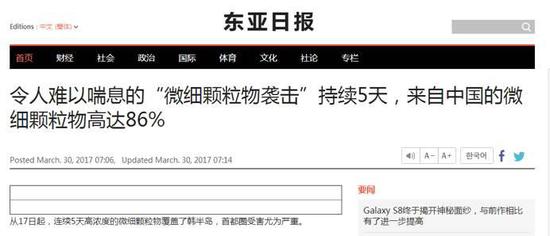 《韓聯(lián)社》3月27日:來(lái)自中國(guó)的霧霾在惡化,對(duì)策也灰蒙蒙