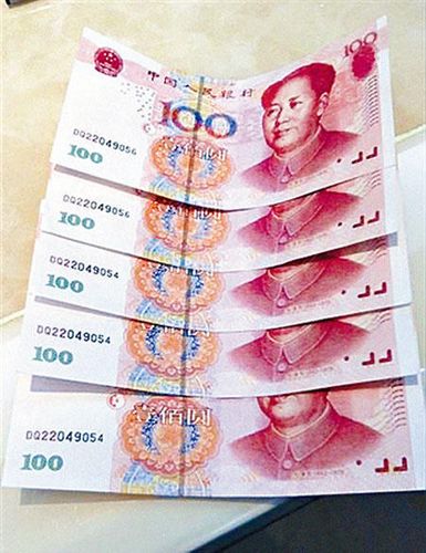 中新網(wǎng)6月19日電 據(jù)香港《星島日報(bào)》報(bào)道,一女子昨(18日)到聯(lián)合道樂富廣場一銀行存款,被揭發(fā)其中14張100元面額人民幣疑是偽鈔,驚動(dòng)警方將其拘捕,連同懷疑“假人仔”帶署調(diào)查,據(jù)悉內(nèi)地近日發(fā)現(xiàn)新一批仿真度極高、鈔票編號相同假人民幣,香港警方正追查是否有新的“假人仔”流入香港。