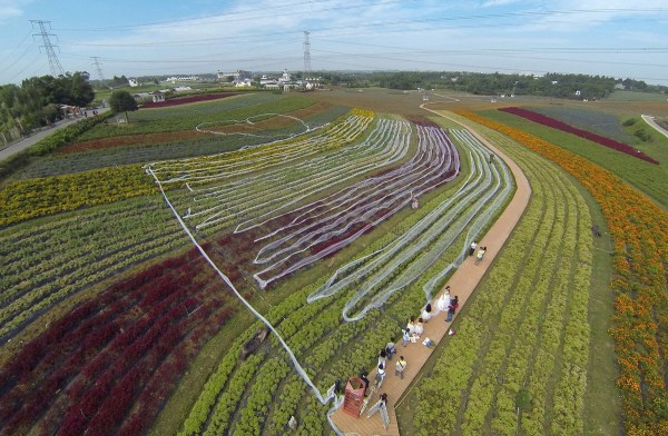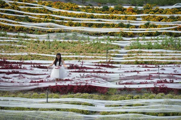 9月24日,為了迎接國慶大假,工作人員在成都一景點內擺放一款4100米長的婚紗,該婚紗的拖尾用單層網(wǎng)紗制作而成,寬度1.5米,耗時一個月,大約花費4萬元。成都商報/東方IC