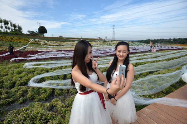 9月24日,成都一景點內現(xiàn)4100米長的婚紗,該婚紗耗時一個月制成,大約花費4萬元。成都商報/東方IC