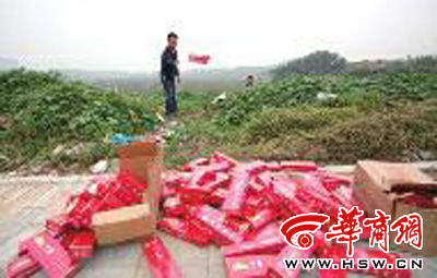 昨日下午,西安市雁翔路附近的一塊荒地里,上百條中華牌香煙和少量的蘇煙散落在草叢和垃圾堆里。這些香煙大多包裝完整,有防偽噴碼,看上去和市面上出售的商品一模一樣。有人說(shuō),這些高檔煙是前一天下午一輛面包車(chē)開(kāi)過(guò)來(lái)扔的。