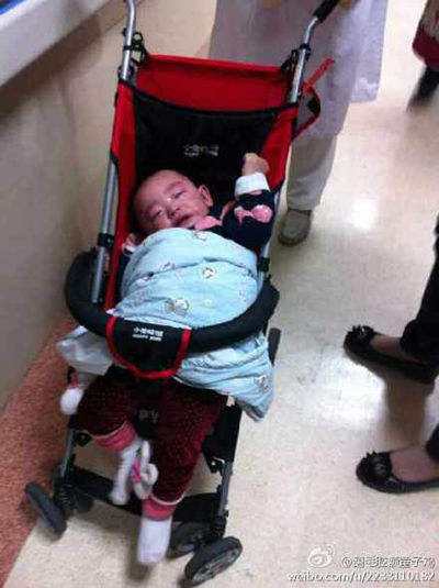 上海市中西醫(yī)結(jié)合醫(yī)院兒科主任沈朝斌介紹,從入院體檢來看,女嬰表現(xiàn)出生長發(fā)育功能的障礙。女嬰已16個月大,但不能獨立坐住,也無法扶墻直立。從女嬰四肢的活動、肌張力的改變以及她動作發(fā)育的遲緩,綜合判斷考慮可以診斷為腦性癱瘓,而且是遲緩性癱瘓。女嬰今后的生活自理能力較差,但可以通過長期的康復(fù)訓(xùn)練來改善其生長發(fā)育和肌體功能。