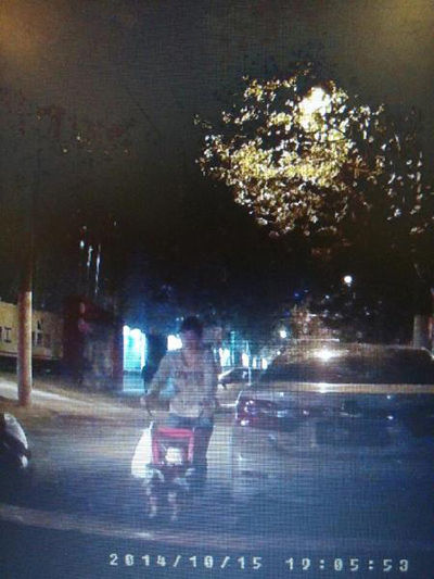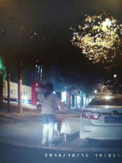 當(dāng)晚7點左右,童先生在市一醫(yī)院門口停車等待妻兒,一名推著童車的婦女的舉動引起童先生注意。