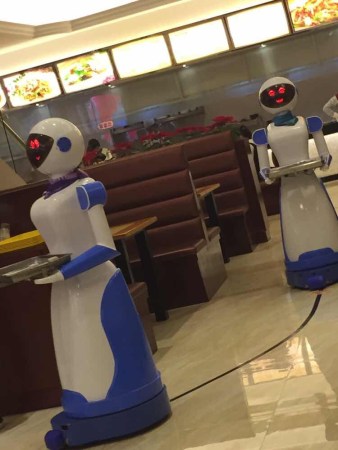 為什么會(huì)想到開(kāi)一家機(jī)器人餐廳?盧迪鈳說(shuō),他原先是做電子商務(wù)的,因?yàn)樽龅貌缓?,他一直想轉(zhuǎn)行。一次上網(wǎng)時(shí),他看到昆山開(kāi)了一家機(jī)器人餐廳,反響非常好。于是他去昆山進(jìn)行了考察。這次考察讓他下了決心,在家人的支持下,他開(kāi)了這家機(jī)器人餐廳。盧迪鈳告訴記者,他們餐廳里的機(jī)器人會(huì)說(shuō)40句基本用語(yǔ),如“你的菜到了,請(qǐng)慢用”等。他想下次編程的時(shí)候加入寧波話,讓機(jī)器人更親切。