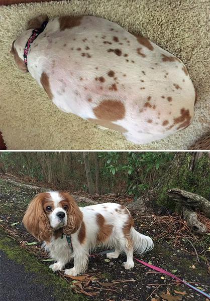 阿比之前總是暴飲暴食,而且也不鍛煉。久而久之,它變得越來越胖,每走一步都要停下來喘喘氣,因此只能坐在小推車?yán)锉蝗送浦摺?016年5月,阿比主人的鄰居很擔(dān)心它的健康情況,于是聯(lián)系了當(dāng)?shù)氐膶櫸锞仍行?。該中心的工作人員與阿比的主人 溝通后,順利把它帶去了中心幫它減肥。
