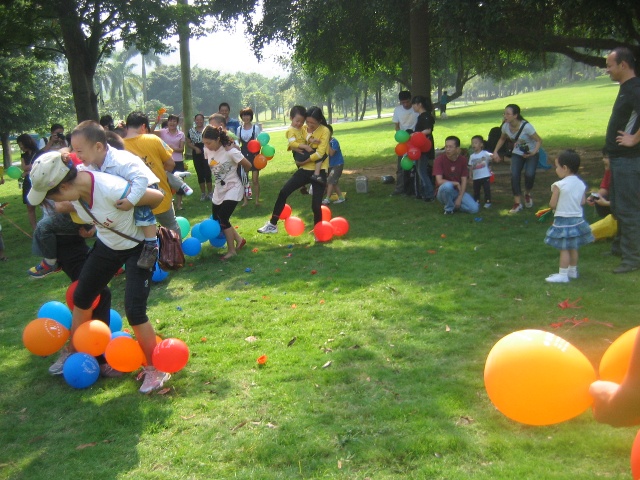 游戲規(guī)則:每個(gè)家庭由一名家長(zhǎng)和一名孩子參加,由工作人員給參與的每個(gè)家庭發(fā)三個(gè)氣球和一根細(xì)繩,請(qǐng)家長(zhǎng)將氣球吹大綁在自己的腳腕,身背孩子。聽(tīng)到主持人的口令游戲開(kāi)始,家長(zhǎng)就背著寶寶踩其他家庭的氣球,在互相踩氣球的同時(shí),首先要注意安全,其次要保護(hù)自己的氣球,還要將別的家庭的氣球踩破,氣球被踩爆即被淘汰,比一比誰(shuí)是冠軍。