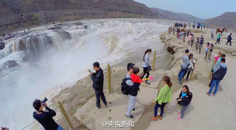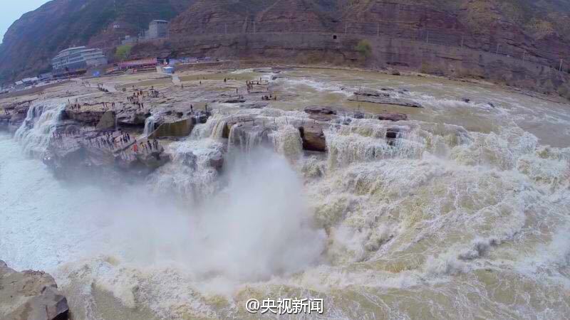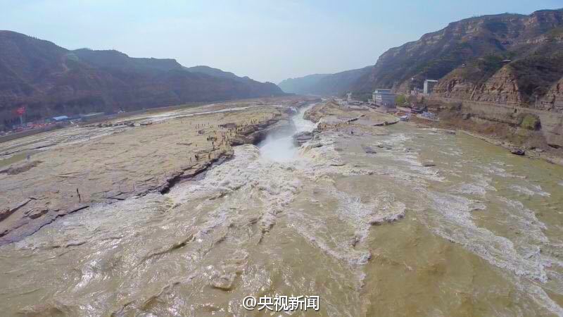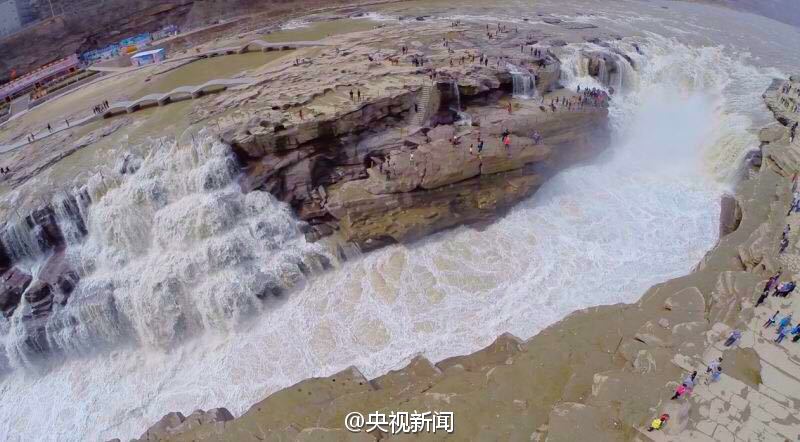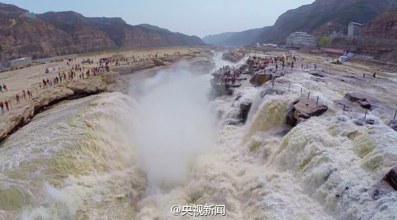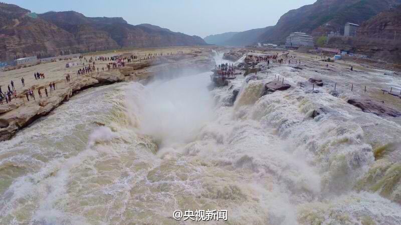 航拍壺口瀑布“桃花汛”