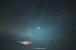 他獨(dú)自一人跑到星空下自拍,將自己與星空完美融合,詩(shī)意地展現(xiàn)人類的渺小、脆弱和孤獨(dú)。是啊,茫茫宇宙,我們至今沒有發(fā)現(xiàn)其他生命的存在,我們只是其中的一粒塵埃。