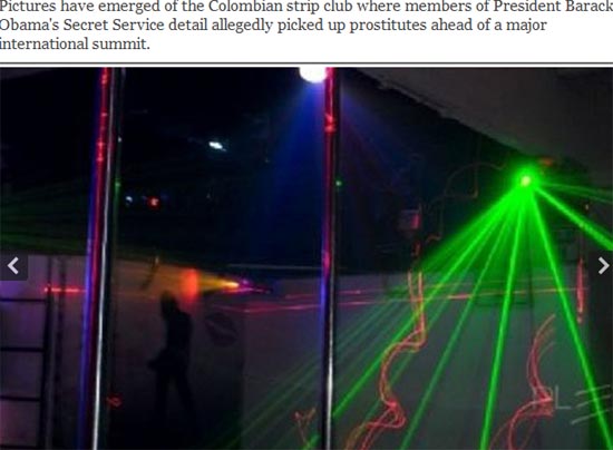 《紐約每日新聞》報(bào)道稱,美國(guó)特勤局特工曾光顧這家位于哥倫比亞卡塔赫納市的名為Pley的俱樂部,一邊豪飲啤酒和威士忌酒,一邊看著舞臺(tái)上的女子跳鋼管舞,并從中選擇過夜床伴。許多特工都會(huì)帶著妓女返回下榻的卡里比酒店(Hotel Caribe),該酒店是美國(guó)特勤局、軍方以及美國(guó)記者常駐之地。
