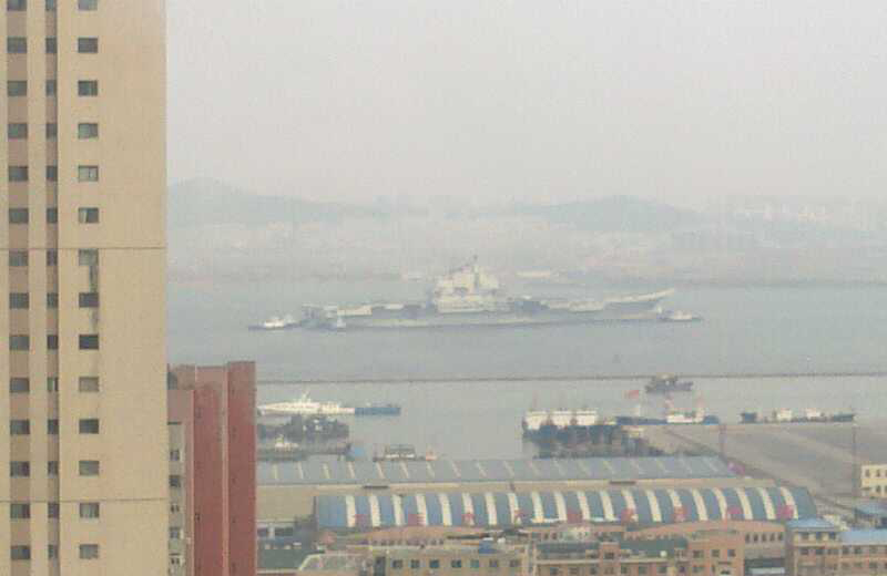 中國航母瓦良格號目前正在大連準(zhǔn)備第5次和第6次試航,圖為試航回航時的現(xiàn)場。