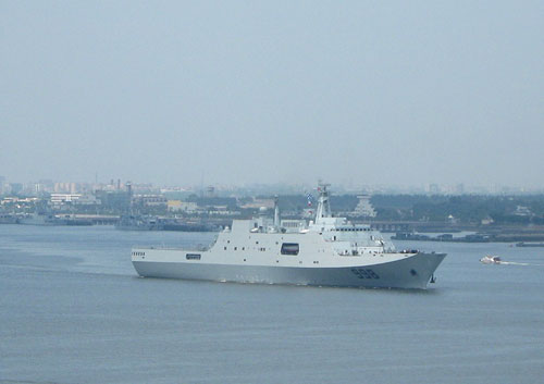 1.8萬噸的“昆侖山”號(hào)船塢登陸艦,僅該艦噸位就接近菲律賓軍艦的噸位總和。(資料圖)