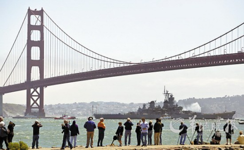 戰(zhàn)艦26日由多艘船只伴隨,由拖船拖曳,通過舊金山金門大橋,駛出舊金山灣,吸引大量民眾觀看。太平洋戰(zhàn)列艦中心主席羅伯特·肯特說:“世界各國海軍中,這艘戰(zhàn)艦最為獨特。其他戰(zhàn)列艦中一些沉沒,一些拆毀,一些變成博物館。‘艾奧瓦’號是最后一艘找到歸宿的戰(zhàn)列艦。”