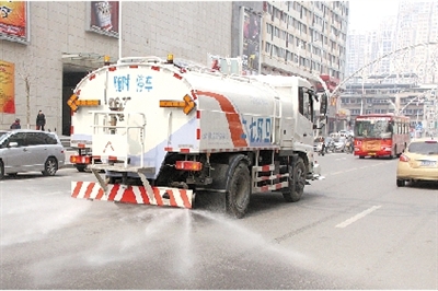 本報(bào)訊 隨著氣溫慢慢回升,天氣也變得干燥起來。昨日上午,記者在航海路看到,二七區(qū)新投入使用的4輛新式灑水車開始上路進(jìn)行道路降塵作業(yè),減少城市污染。