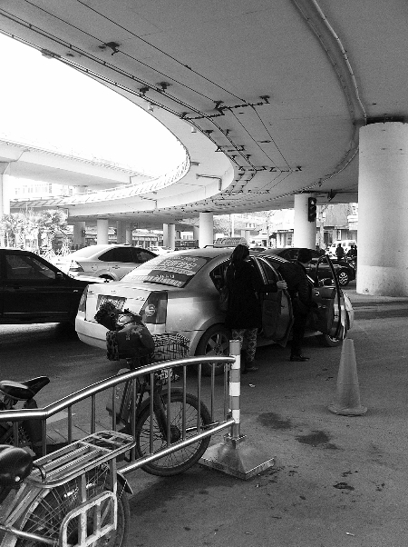 昨天上午10點(diǎn),在鄭州市大學(xué)路和航海路交叉口東北角公交站牌下,記者向4輛已有乘客的出租車招手示意停下,但沒有一輛停下。