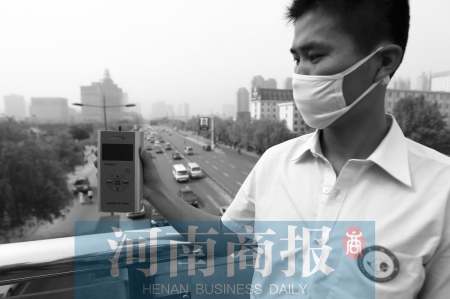 一臺(tái)文具盒大小的測(cè)量?jī)x,只需一分鐘,即可測(cè)出所在位置的PM2.5濃度。昨日,鄭州民間監(jiān)測(cè)PM2.5活動(dòng)正式拉開帷幕。