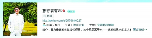 據(jù)了解,朱志賢是城管局最初的一名微博管理員,現(xiàn)因工作需要被借調(diào)到了鄭州市自來(lái)水公司。