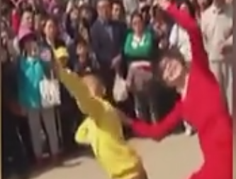 女漢子與男子當街拼刀肉搏
