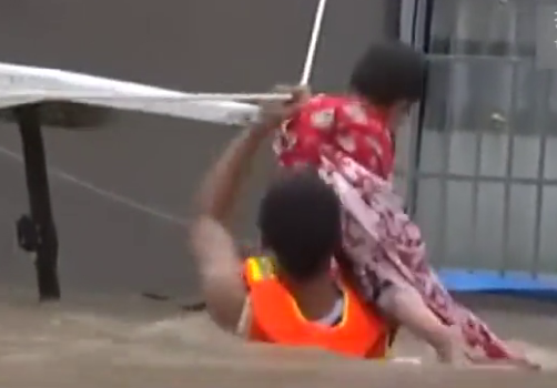 實(shí)拍消防員洪流里奮力救小孩