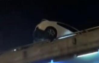 小車“掛”立交 撞車現(xiàn)驚險一幕