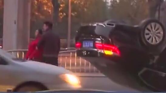 夫妻開車吵架 車翻了個底朝天