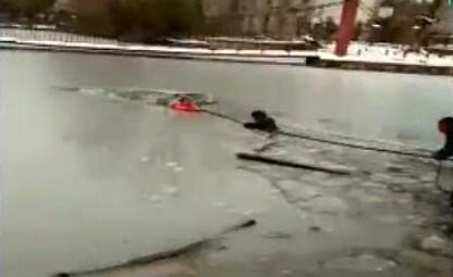 信陽:民警跳入冰窟 胳膊破冰勇救落水女童