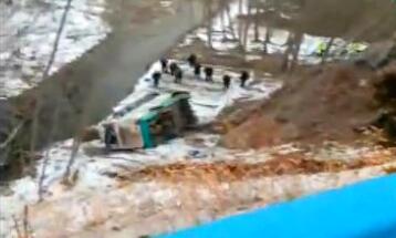客車坐滿學(xué)生 翻進(jìn)深溝