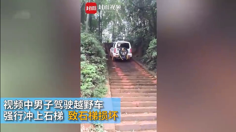 男子開(kāi)車(chē)碾碎千年古寺石梯