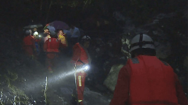 安徽霍山 強(qiáng)降雨致游客被困 消防緊急救援