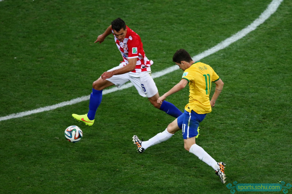在巴西和克羅地亞的比賽最后時刻,拉米雷斯中場斷球,奧斯卡單騎闖關,在禁區(qū)邊緣一記捅射再次洞穿普萊蒂科薩的十指關,3-1,巴西鎖定勝局。最終,巴西隊憑借內馬爾的2個進球,3-1逆轉克羅地亞贏得本屆世界杯的開門紅。圖為奧斯卡捅射瞬間