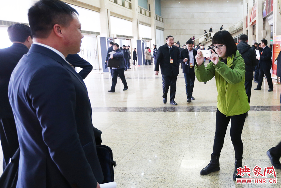 2015年河南兩會期間,省會堂大堂南側“大象融媒2015年河南兩會新聞會客廳”展臺前,始終有一個身穿綠色沖鋒衣的女孩,時而她是采訪代表、委員的記者;時而她是介紹大象融媒新聞產品的講解員;時而又是幫代表、委員拍照的攝影師。她就像一個跳芭蕾的舞者,在省兩會會場穿梭奔跑著,盡情展現(xiàn)大象融媒記者的風采。