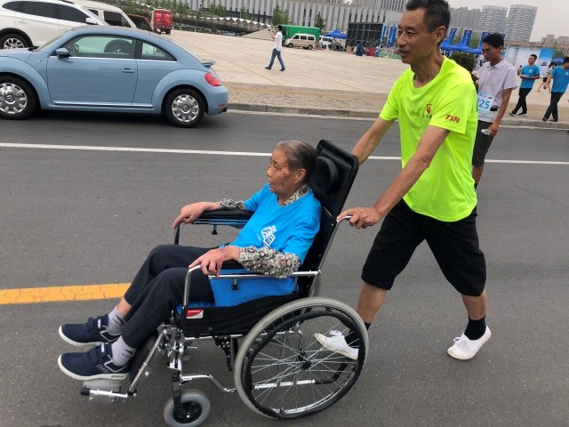 年代主題跑最高齡跑者出現了?。?!90歲高齡的老奶奶坐在輪椅上與身后68歲的兒子一同參與到跑步當中,這正是年代主題跑一直倡導的公益環(huán)保健康生活的精神體現,環(huán)保無邊界,健康無大??!