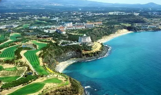 【龍頭巖】位于濟州市中心的龍?zhí)抖吹暮_?,形似神話傳說中的一條巨龍,200萬前年熔巖噴發(fā)后冷卻而形成的巖石,高10米,長30米??瓷先ハ笫窃邶垖m生活的龍欲飛上天時突然化作石頭一般。正是由于巖石一端頗似龍頭,故得名龍頭巖。