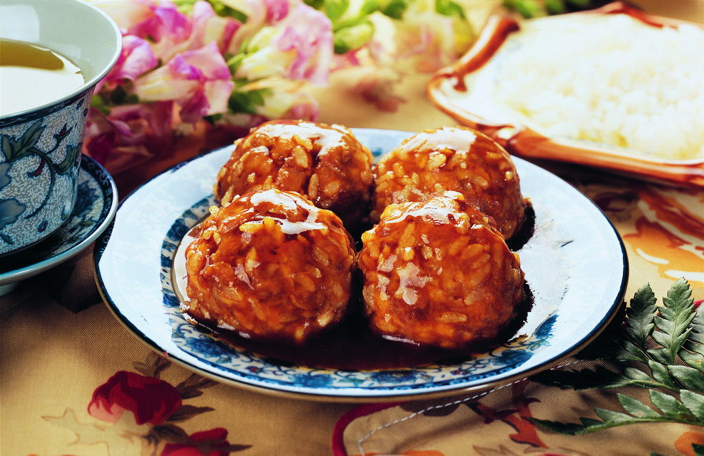 四喜丸子是一道知名豫菜,是以精瘦肉及碎饅頭等為主料經(jīng)油炸八成熟,放入碗內(nèi)加高湯蒸熟即成,每碗放四個(gè)。由于油炸過后又加水蒸過,吃起來(lái)鮮而不膩,酥嫩爽口,香味濃郁又利于消化。