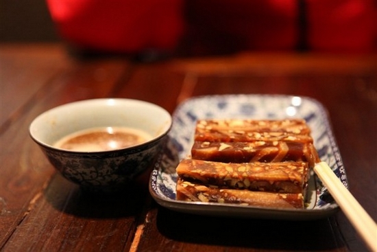 北京人的年飯里,有一道不得不提的傳統(tǒng)菜品——“豆兒醬”,這道菜對(duì)于老北京人來說還是家喻戶曉的?!岸箖横u”是一種由肉皮、豆腐干、黃豆、青豆、水芥做成的涼菜,清爽可口,用來佐酒開胃,再合適不過了。