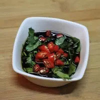 8. 香菜、醬油、糖、辣椒根據(jù)個(gè)人口味拌在一起就好,吃時(shí)蘸食。