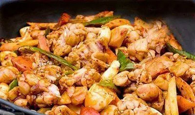 老百姓做菜講究的就是原汁原味,您柴雞買回來洗凈直接剁成小塊,不焯水就能直接煸炒。不過為了色香味俱全,今兒個還得教給您一個油炒糖色的方法。