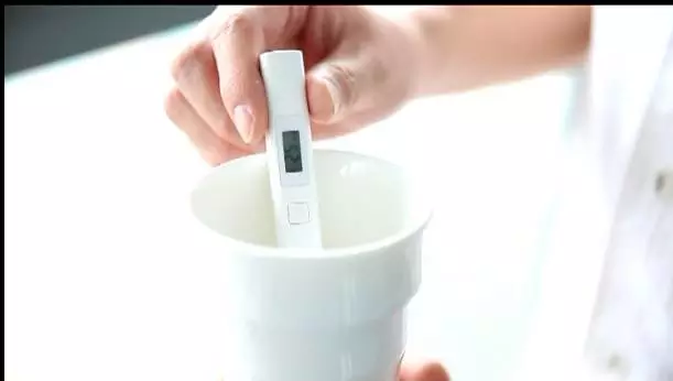 用小米水質(zhì)檢測(cè)筆,這里水質(zhì)顯示的數(shù)值和礦泉水的數(shù)值略有差別,證明了酒店的用水是健康的。