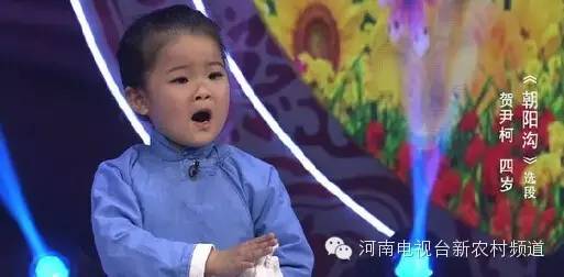 4歲的小姑娘賀尹柯傳說是和第一代銀環(huán)媽的扮演者,也是本場評委的楊華瑞老師有點(diǎn)撞臉,大家一定要仔細(xì)看看哦!她帶來《朝陽溝》唱段。