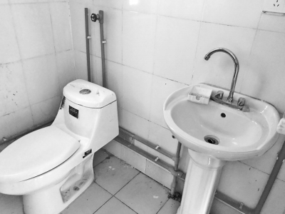 公租房?jī)?nèi)衛(wèi)生間裝好了坐便器和洗手池。