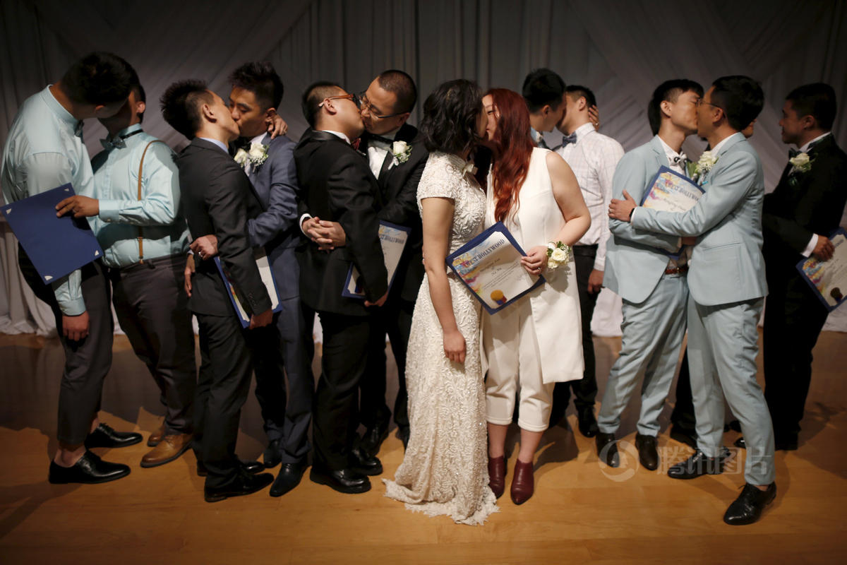 6月9日,美國加州洛杉磯,七對來自中國的同性戀情侶舉行集體婚禮,婚禮儀式由中國大陸一家互聯(lián)網(wǎng)巨頭資助。加州是美國同性戀婚姻合法的30個州之一,婚禮費用均由贊助企業(yè)承擔。